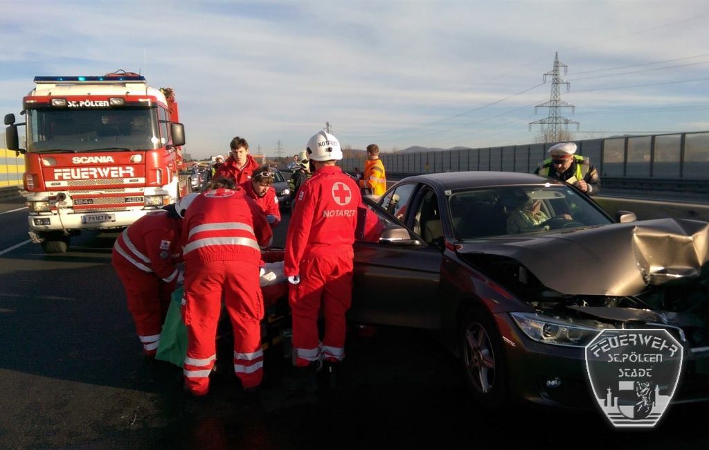 Zur Mittagszeit des 16. November kam es gleich zu mehreren Unfällen auf der A1 bei St. Pölten. Die Stadtfeuerwehr rückte mit einigen Fahrzeugen aus um die vermeintlich eingeklemmten Personen aus den Unfallfahrzeugen zu befreien und die Bergung der Fahrzeuge durchzuführen. Durch diese Unfälle entstand ein kilometerlanger Stau auf der Autobahn Höhe Knoten St. Pölten - es wurden mehrere Personen verletzt.