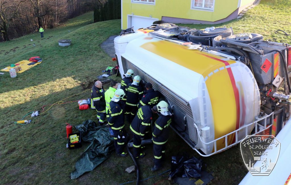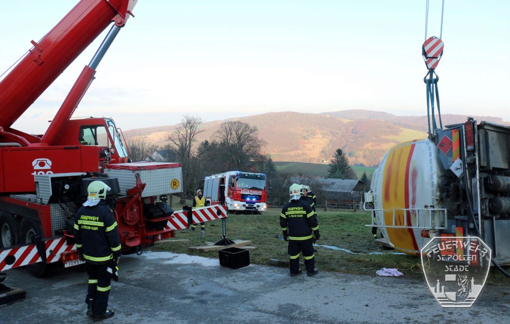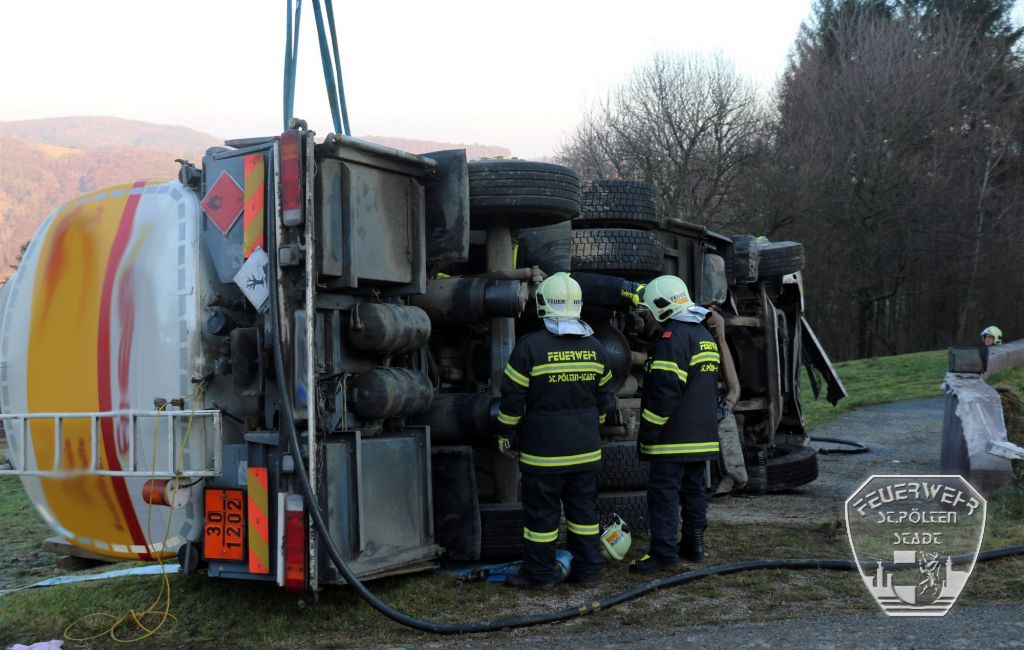 Am Morgen des 10. Dezember 2015 ging in der Bereichsalarmzentrale St. Pölten ein Notruf bezüglich eines verunglückten Tankwagens ein. In Almerberg bei Neustift-Innermanzing war ein mit knapp 10.000 Liter Heizöl beladener Tanklaster aus unbekannter Ursache auf eine Mauer gefahren und umgekippt.