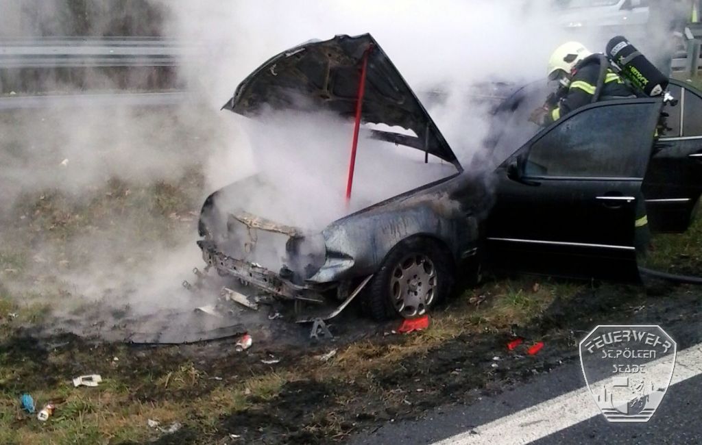 Am 02. Jänner wurde die Stadtfeuerwehr zu eine Fahrzeugbrand nach Verkehrsunfall auf die A1 alarmiert.