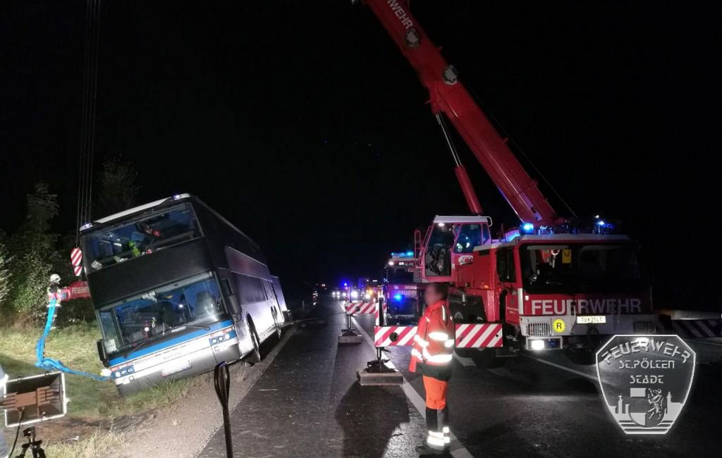 In der Nacht auf den 13. Oktober 2016 kam es auf der Autobahn A1 zu einem Unfall mit einem mit 90 Fahrgästen besetzten Reisebus. Ein großer Reisebus kam aus unbekannter Ursache samt Anhänger von der Fahrbahn ab und schlitterte in den Straßengraben - dabei blieb der Bus in einem Winkel von etwa 40 Grad stecken und drohte umzustürzen.