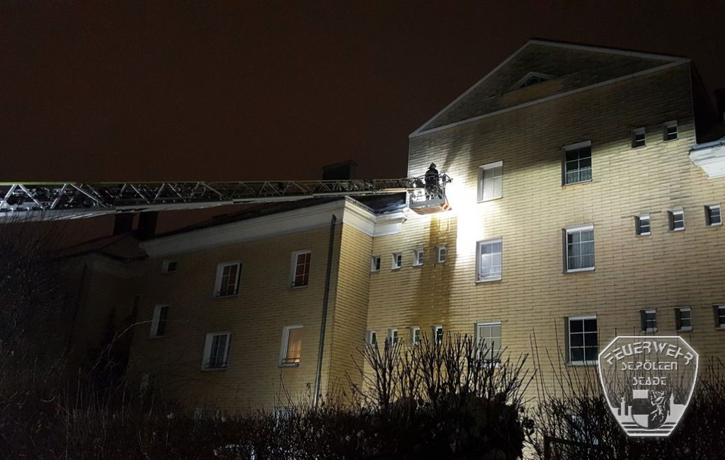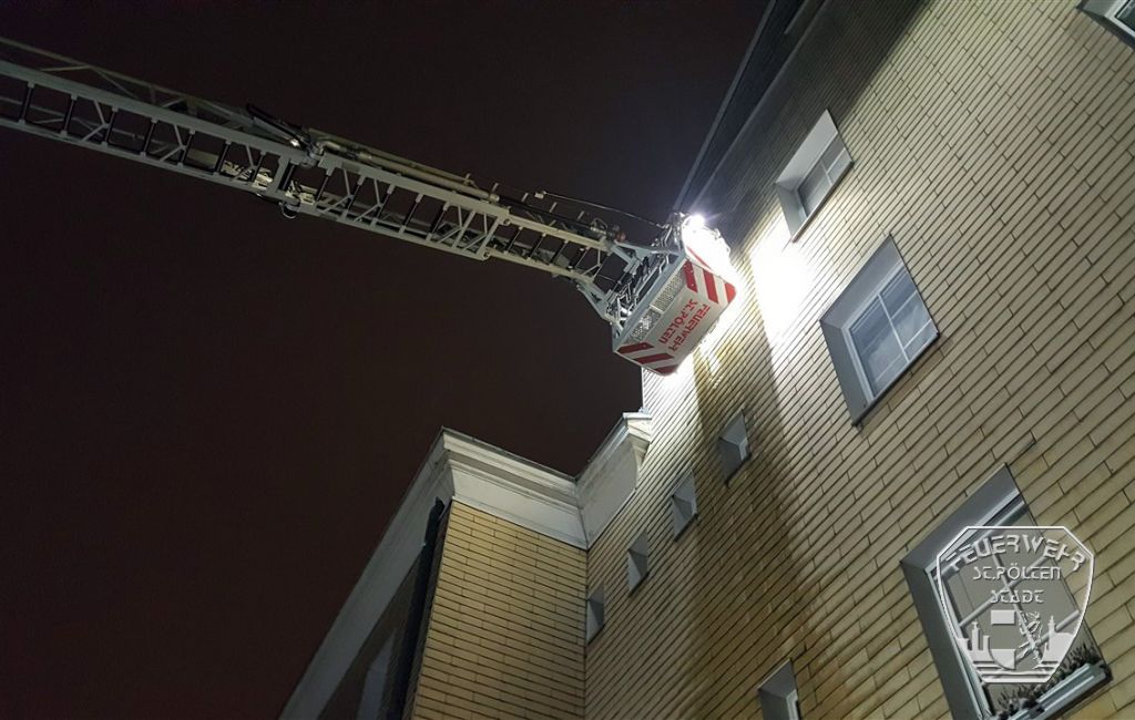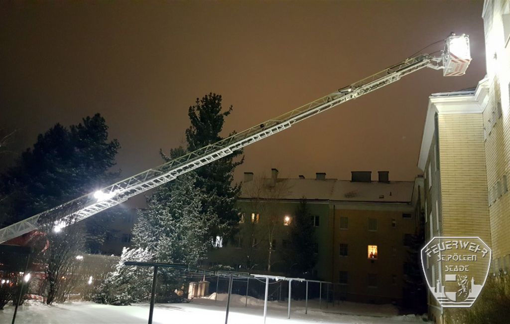 In der Nacht auf Montag kam es bei einem Wohnkomplex im Stadtgebiet zum Wassergebrechen in einem Durchlauferhitzer. Da sich der Durchlauferhitzer im dritten Obergeschoss, auf der Außenseite des Gebäudes, befindet, wurde die Drehleiter der Stadtfeuerwehr angefordert.