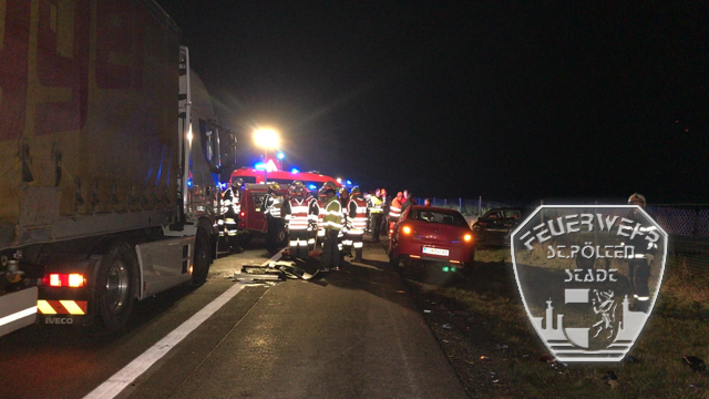 Auf der A1 höhe Haindorf kam es zu einem Unfall zwischen einem LKW und 4 PKW´s. Auch bei diesem Einsatz waren glücklicherweise keine Personen in den Fahrzeugen eingeklemmt. Da der Großteil der Fahrzeuge noch bedingt fahrbereit waren wurde lediglich ein PKW geborgen.