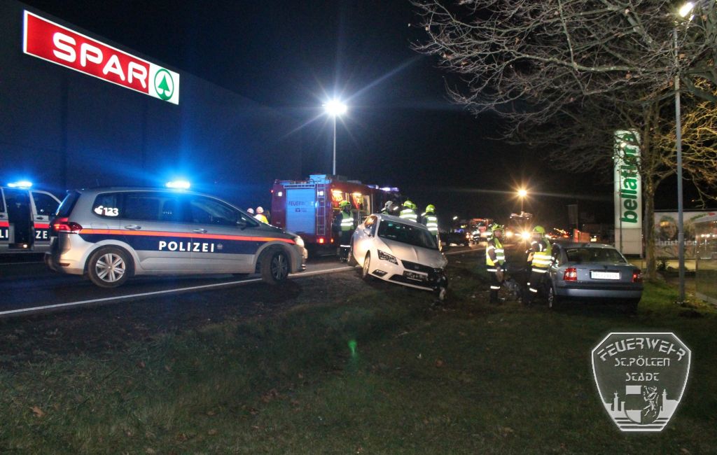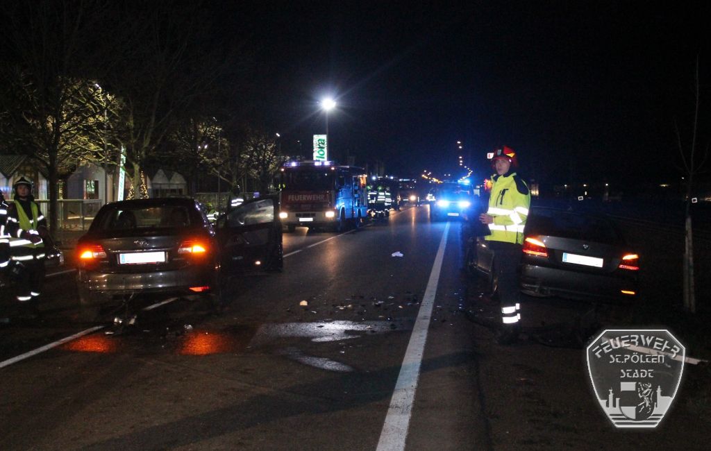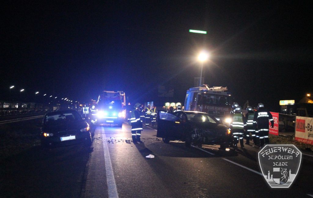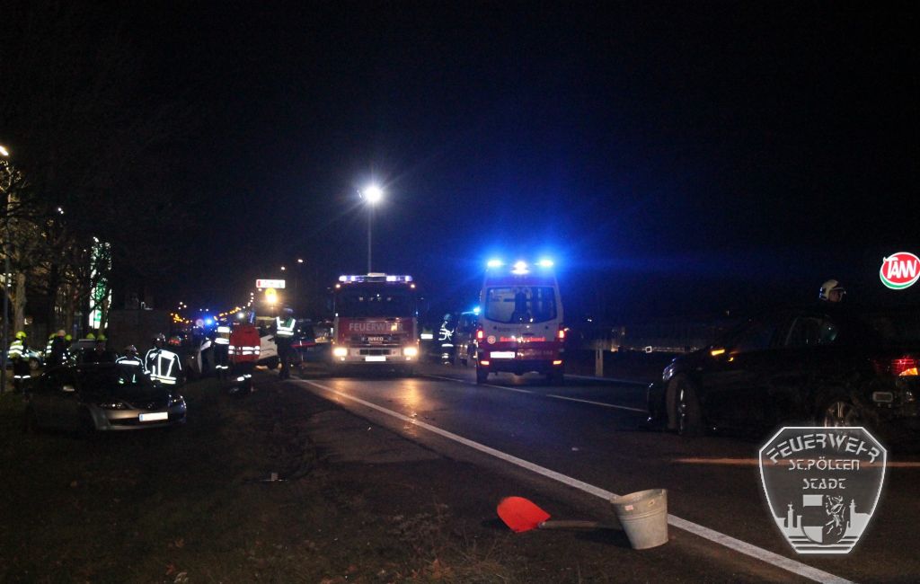 Gegen 17.00 Uhr des 07. Dezember 2017 wurde die Feuerwehr St. Pölten Stadt gemeinsam mit 5 weiteren Feuerwehren zu einem Verkehrsunfall mit mehreren eingeklemmten Personen alarmiert.