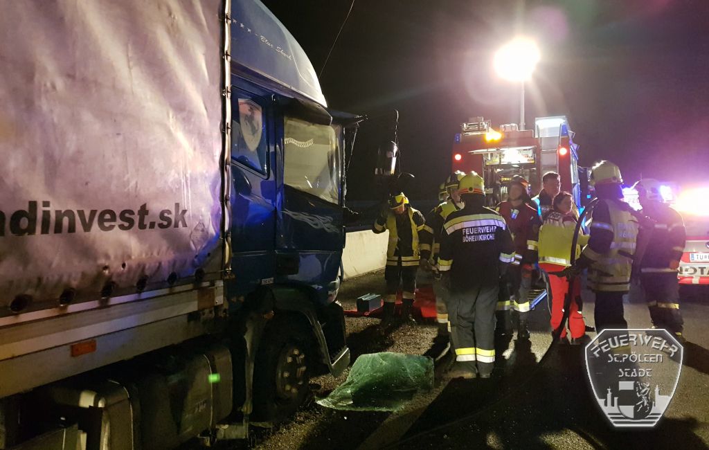 In der Nacht auf den 29. März 2018 kam es auf der Autobahn A1 zu einem schweren Unfall zwischen zwei LKW. In Fahrtrichtung Wien bei Böheimkirchen, fuhr ein LKW auf einen zweiten auf. Dabei wurde das Fahrerhaus des Lastkraftwagens derart stark deformiert, dass der Lenker in seinem Fahrzeug eingeschlossen wurde.