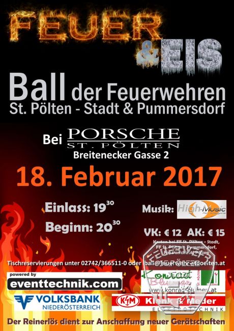 Am 18. Februar findet traditionell unser Feuer & Eis Ball im Autohaus Porsche statt. Neben einer erlesenen Auswahl an Top Weinen Niederösterreichs wird unseren Gästen tolle Unterhaltung sowie eine Tombola mit großartigen Sachpreisen geboten.