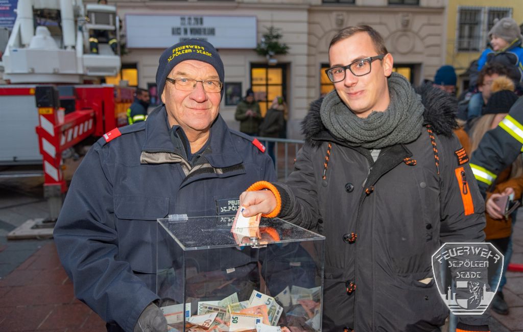Der gesamte Spendenerlös wurde am Abend von der Feuerwehr St. Pölten-Stadt an das Ö3-Team übergeben. Neben den Spenden der einzelnen Feuerwehrmitglieder und der Zivildiener konnten somit 3180,86 Euro für das Ö3 Weihnachtswunder gesammelt werden.