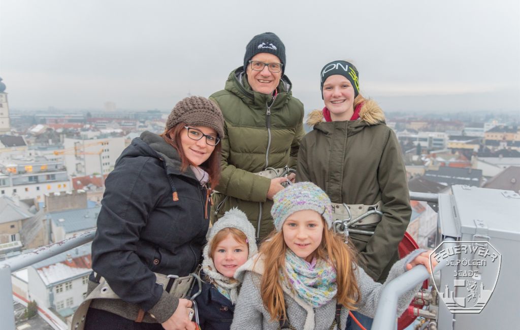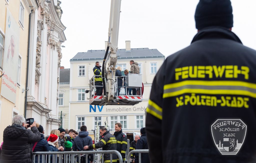 Die Besucher am Rathausplatz St. Pölten hatten nun die einmalige Möglichkeit, die Landeshauptstadt von oben bestaunen zu können. Gegen eine Spende für das Ö3 Weihnachtswunder erhielten sie eine Fahrt über die Dächer der Stadt mit dem - mit 54 Metern - höchsten Hubrettungsgerät Österreichs.